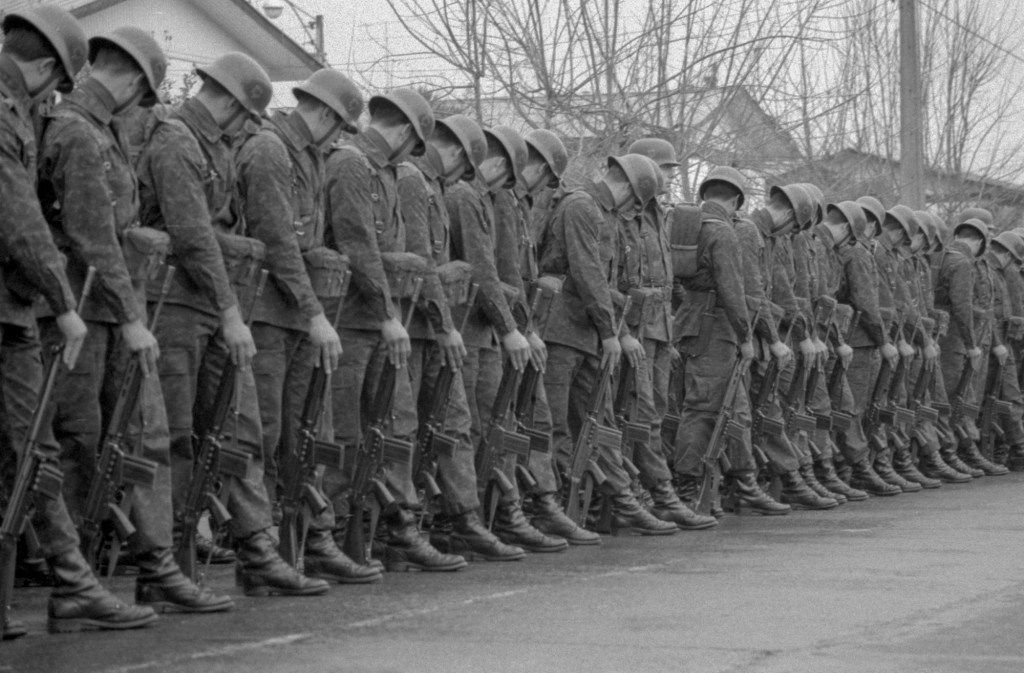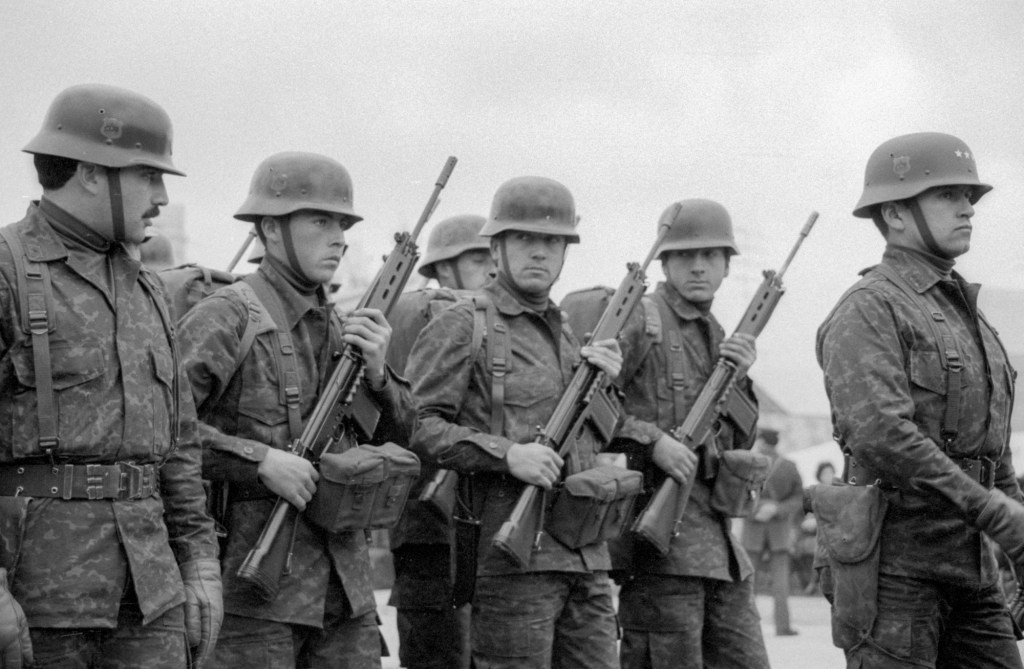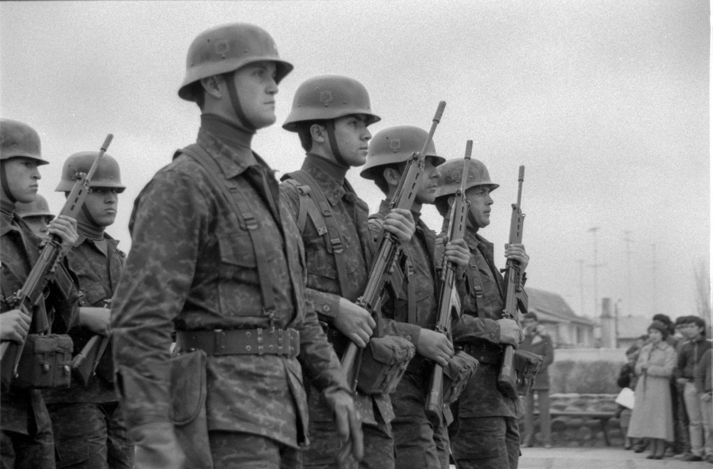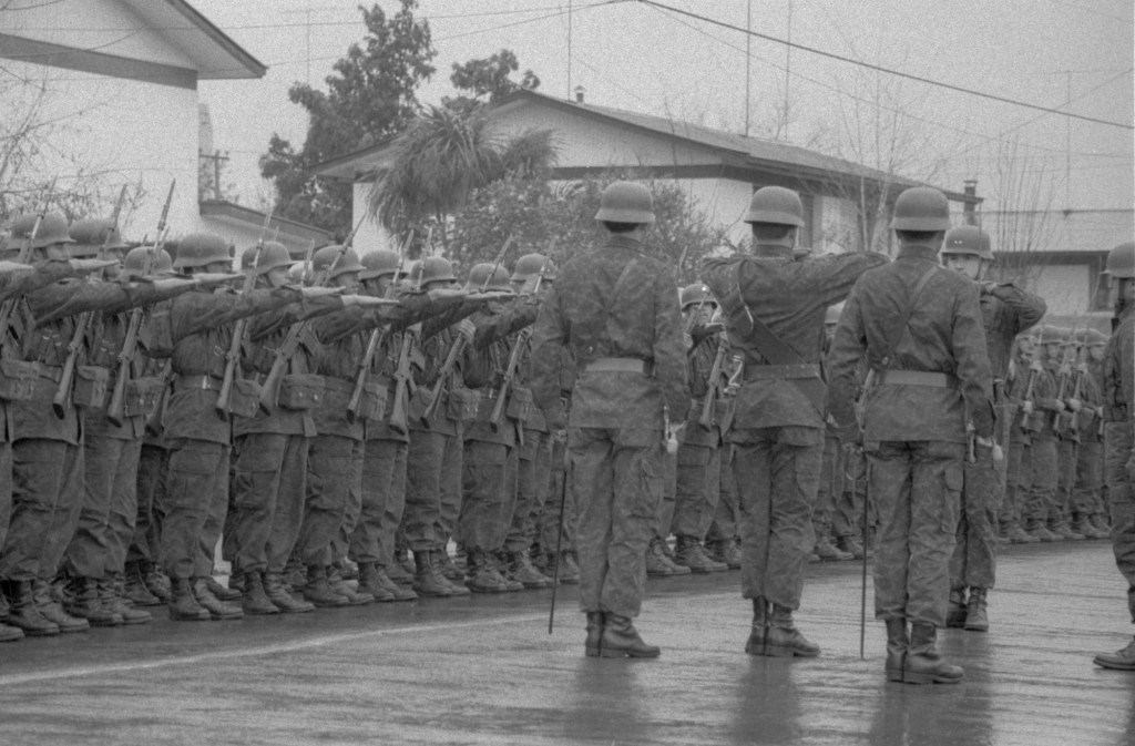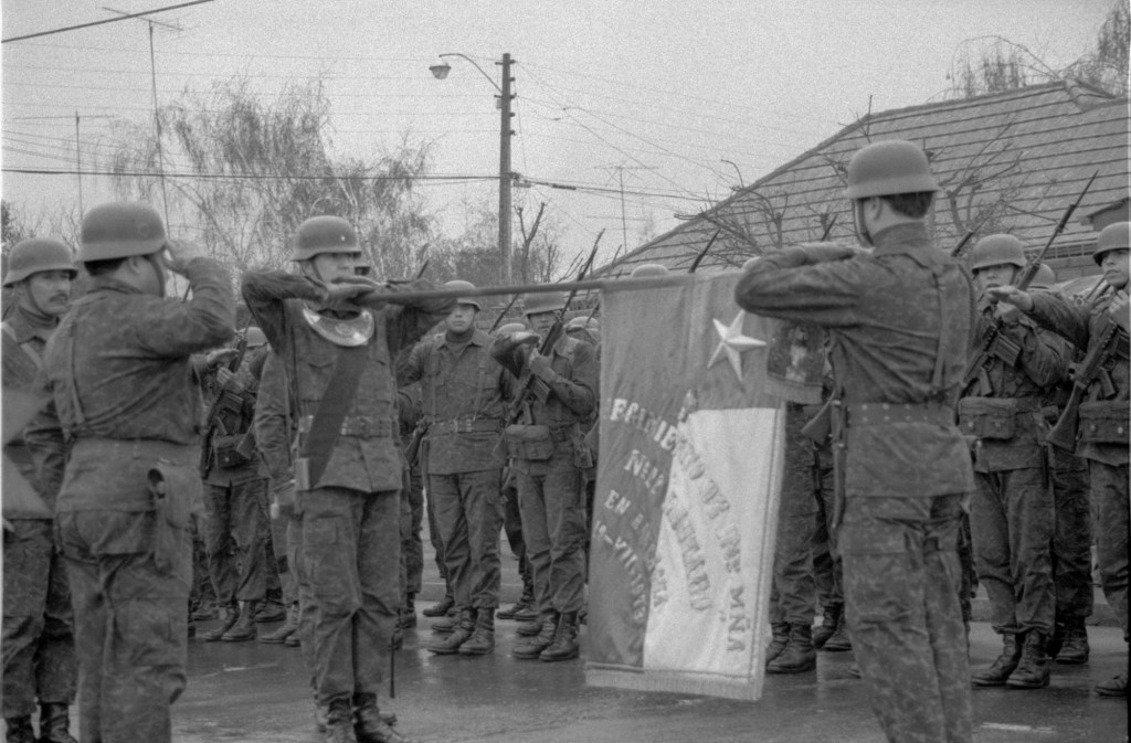 I spent part of a weekend earlier this month scanning some old negatives from my first time in Chile. That was over the summer (winter here) of 1987, between my junior and senior years of high school, when I came here at the tail end of the Pinochet dictatorship. I took these black and white photos during a ceremony in Rancagua of soldiers swearing loyalty to the Chilean flag on the day commemorating the Combate de la Concepción during the War of the Pacific. July 9, 1987.